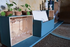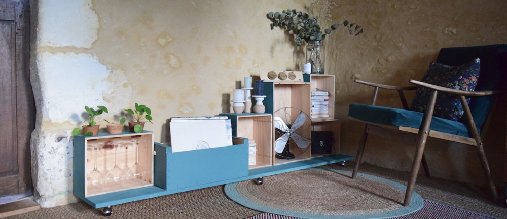 Particulièrement résistantes et aisées à récupérer, les caisses à vin constituent un matériau durable pour façonner sur mesure du mobilier upcyclé.