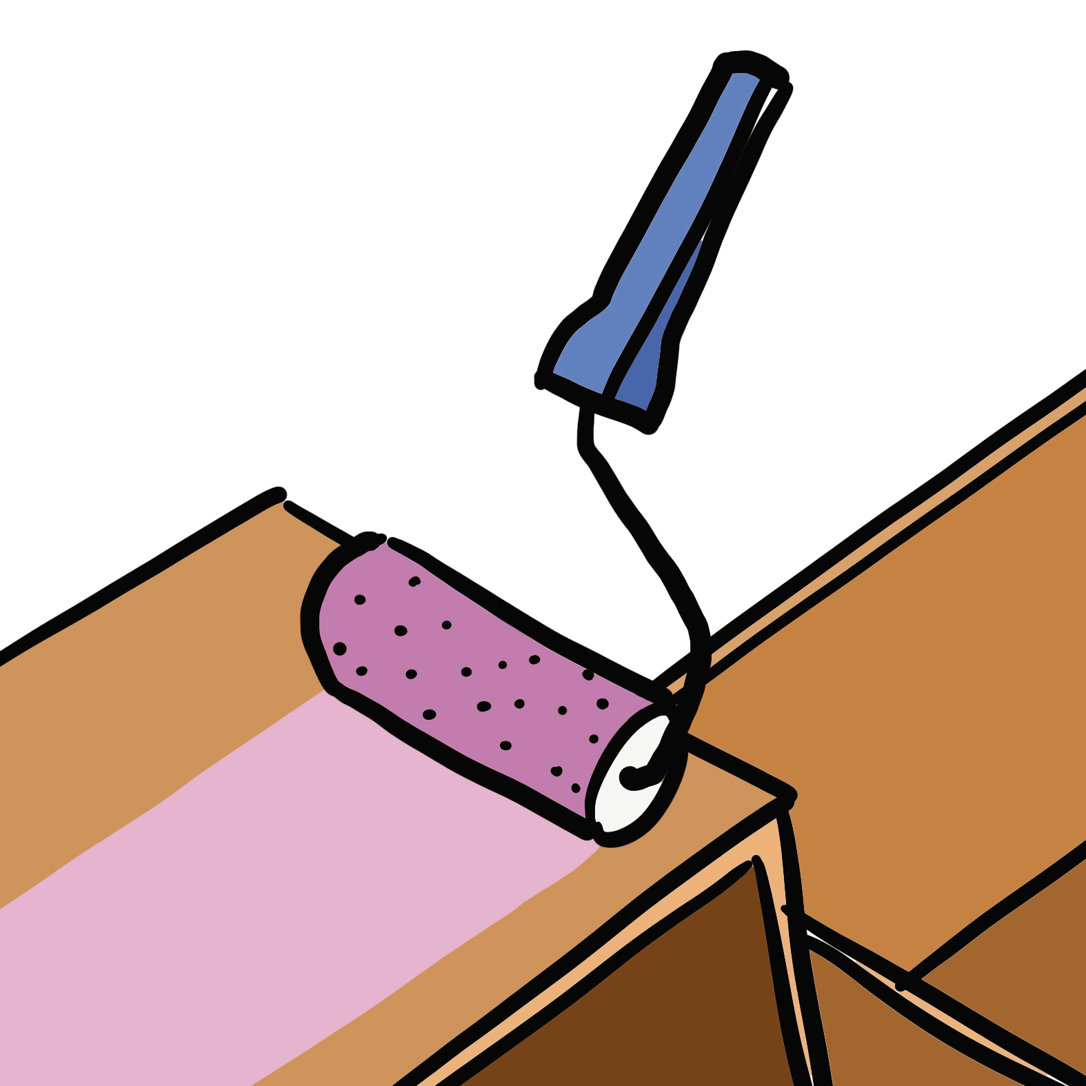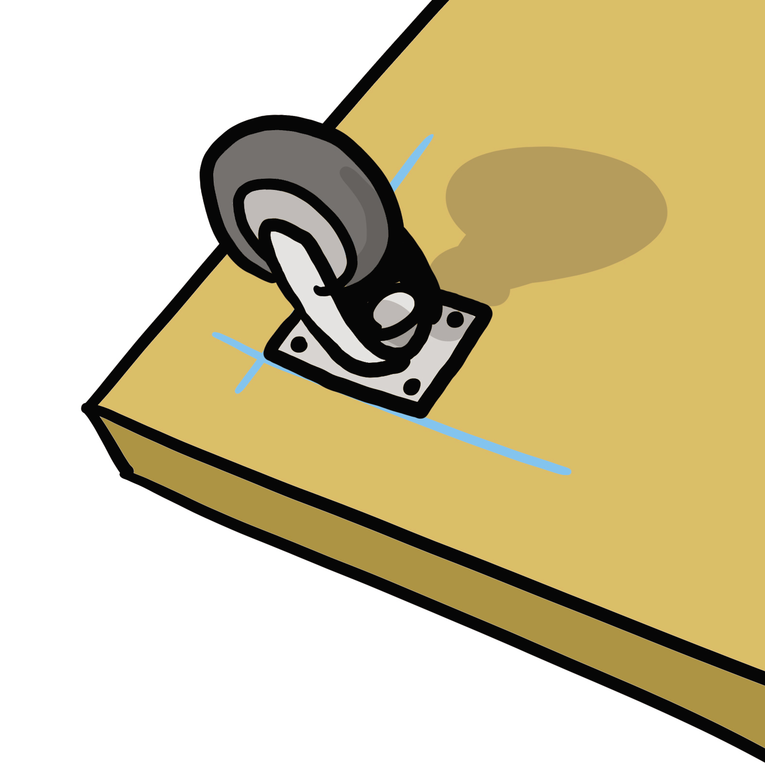 Tracez des repères à 5 cm au-dessus de chaque angle aux extrémités, ainsi qu'au centre de la planche pour y visser les roulettes.