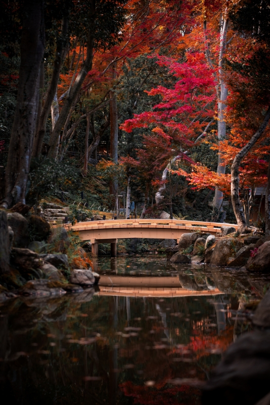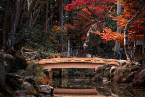 Lorsqu'on évoque la beauté des saisons au Japon, la première image qui nous vient à l'esprit est celle des cerisiers printaniers, parés de leurs doux pétales rosés. Pourtant, il serait dommage de ne pas s'y aventurer au crépuscule de l'année, lorsque les feuilles d'érable se colorent de rouge et de doré. Ce phénomène naturel, désigné sous le nom de « kōyō », fait l'objet d'une coutume incontournable dans la culture nippone : le « momijigari ». Cette « chasse aux feuilles rouges » est le pendant automnal de « o-hanami », la fameuse tradition rattachée à la floraison des sakura. L'érable japonais se distingue de son congénère québécois, plus connu par son déploiement de teintes aussi surprenantes que ravissantes.
