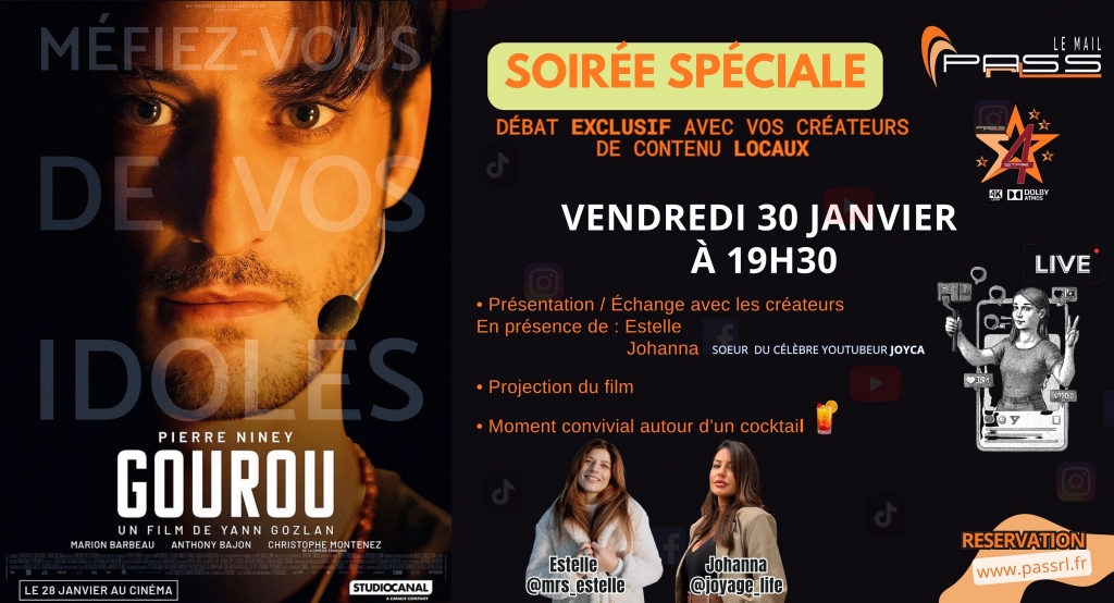 Venez découvrir le film "Gourou", partager un moment convivial autour d’un cocktail puis échanger avec des créatrices de contenu pour en savoir plus sur leur métier.